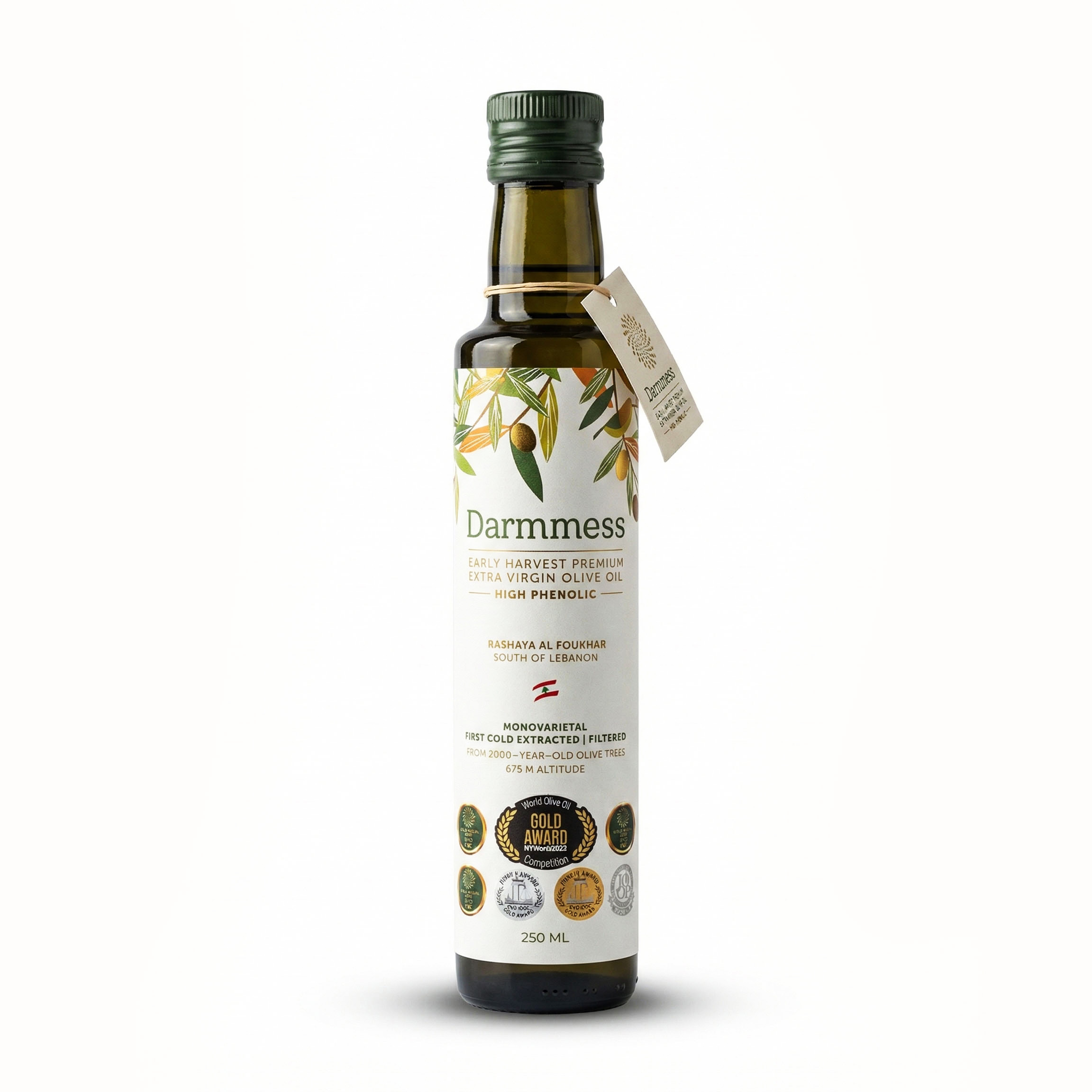 250ml – زيت زيتون دارمس عالي الفينولات – حصاد مبكر – بكر ممتاز